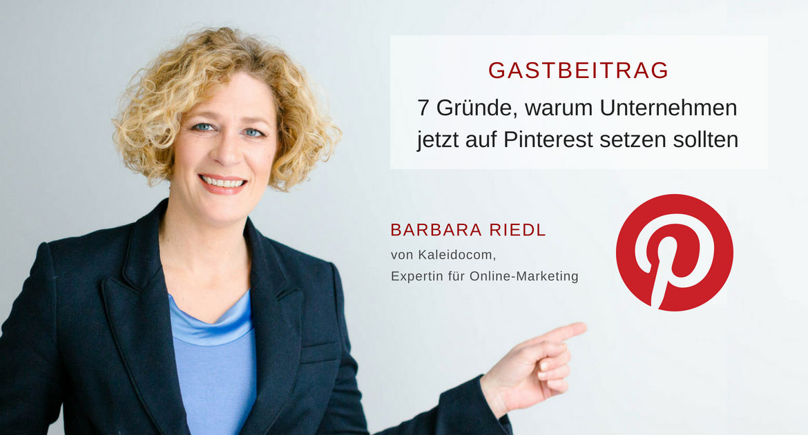 Barbara Riedl ist Expertin für Online-Marketing mit mehr als 15 Jahren Erfahrung in der Online-Welt und liebt Pinterest seit 2010. Sie unterstützt Sie, auf Pinterest erfolgreich zu werden und dadurch enorme Zugriffe auf Ihre Webseite zu bringen. Mit Ihrem Unternehmen Kaleidocom bietet sie Pinterest-Workshops, eBooks und regelmäßige Tipps an.