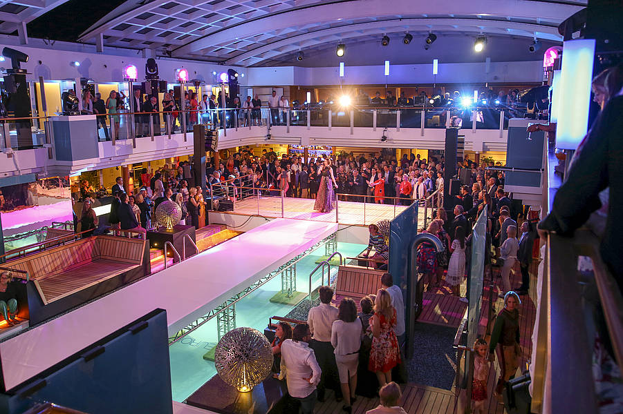Im Spotlight des Modesommers 2018 – beim Eventauftakt im Hamburger Hafen verwandelte sich die EUROPA 2 in einen Mode-Hotspot. Die Location: Das stylische Luxusschiff, welches Fashion, Glamour & Lifestyle von Bug bis Heck widerspiegelte. Zum Highlight des Abends zählte die glamouröse Fashion Show, bei der sich der Pool auf Deck 9 in einen Laufsteg verwandelte, auf dem Talbot Runhof die exklusive EUROPA 2 Cruise-Collection präsentierte. Unter den Models waren international bekannte Gesichter wie Esther Heesch und Antonia Wesseloh.