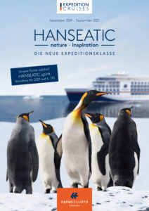 Die HANSEATIC nature, HANSEATIC inspiration und BREMEN steuern insgesamt 18 Mal die Antarktis an. Unter anderem bei einer 23-tägigen Tour von Feuerland nach Südafrika durch die Antarktis mit der HANSEATIC inspiration (INS2104). Dabei geht es von Kap zu Kap – von Kap Horn zum Kap der Guten Hoffnung. In der Arktis steht das entlegene Franz-Josef-Land im Mittelpunkt einer gesamten Reise (NAT2118). Die BREMEN geht auf eine große Expeditionsroute, die in die Antarktis und an den Südpolarkreis führt (BRE2103). Eine Premiere im Angebot von Hapag-Lloyd Cruises ist die Reise „Dynastien im Dialog“: von Japan aus geht es auf dieser 16-tägigen Reise mit vielen spannenden Stopps weiter nach Südkorea und Taiwan (NAT2019). Alle Schiffe unternehmen aber auch Expeditionen „vor der Haustür“: Britische Inselwelten, die Azoren oder die Küsten an Nord- und Ostsee können auf den oftmals kurzen Reisen intensiv erkundet werden.