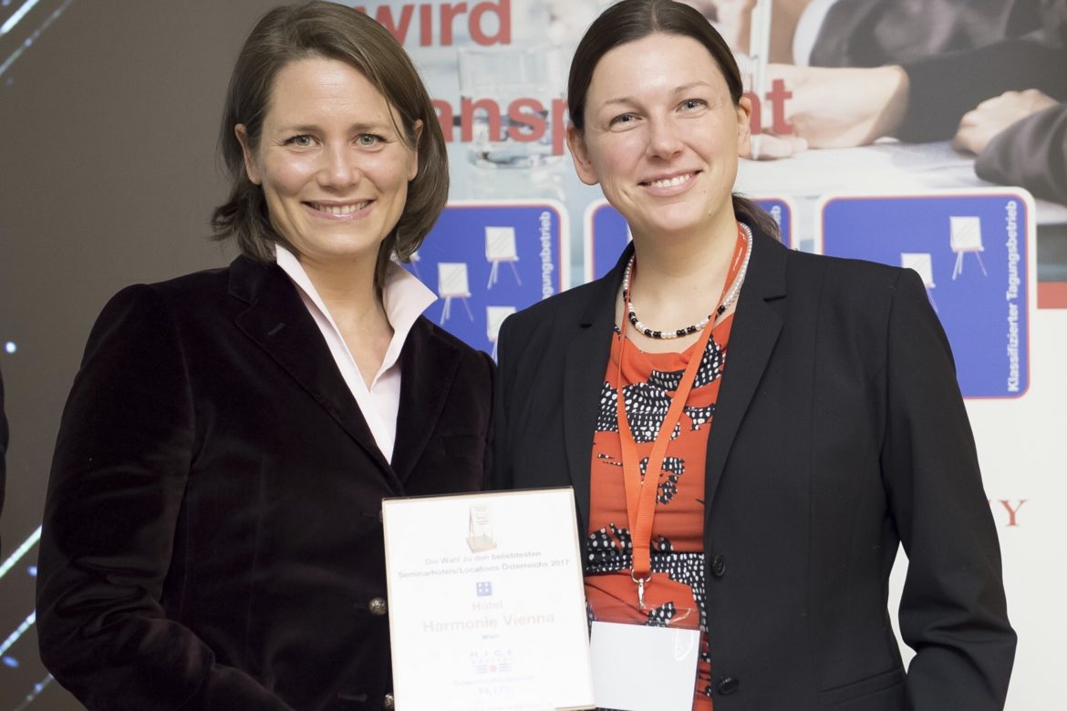 Das Boutiquehotel The Harmonie Vienna, ein klassifiziertes Tagungshotel, wurde anlässlich der Verleihung des Goldenen Flipcharts von „Tagen in Österreich“ als eines der beliebtesten Seminarhotels Österreichs ausgezeichnet. General Managerin Mag. Sonja Wimmer und Sales-Managerin Mag. Lydia Steiner nahmen stolz den Preis entgegen.